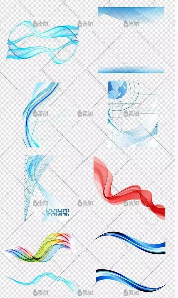 176–蓝色科技感动感线条丝绸彩带波浪曲线高科技商务ps背景免扣素材