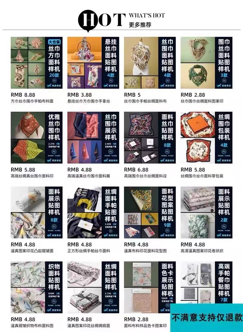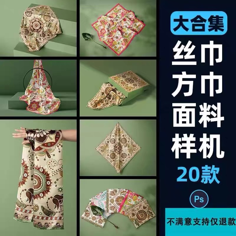 181–方巾丝巾围巾手帕布料面料图案印花展示贴图样机PS设计素材模板