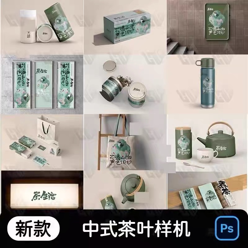 186–茶叶品牌礼盒茶叶罐包装盒logo展示vi效果图psd贴图样机设计素材