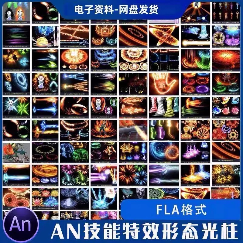 189–AN技能特效形态光柱沙雕武侠修真修仙星阵法阵脚底光环动画素材