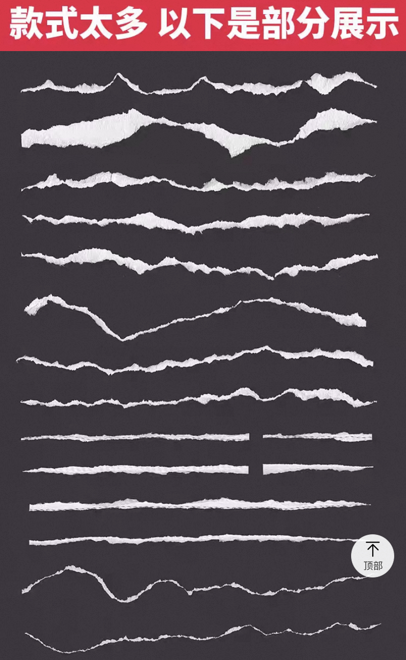 195–撕纸纹理边框免抠PNG图案手账手幅影楼海报设计PS特效素材库