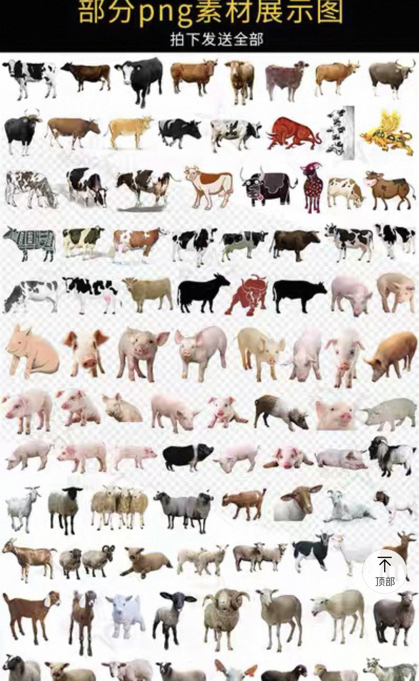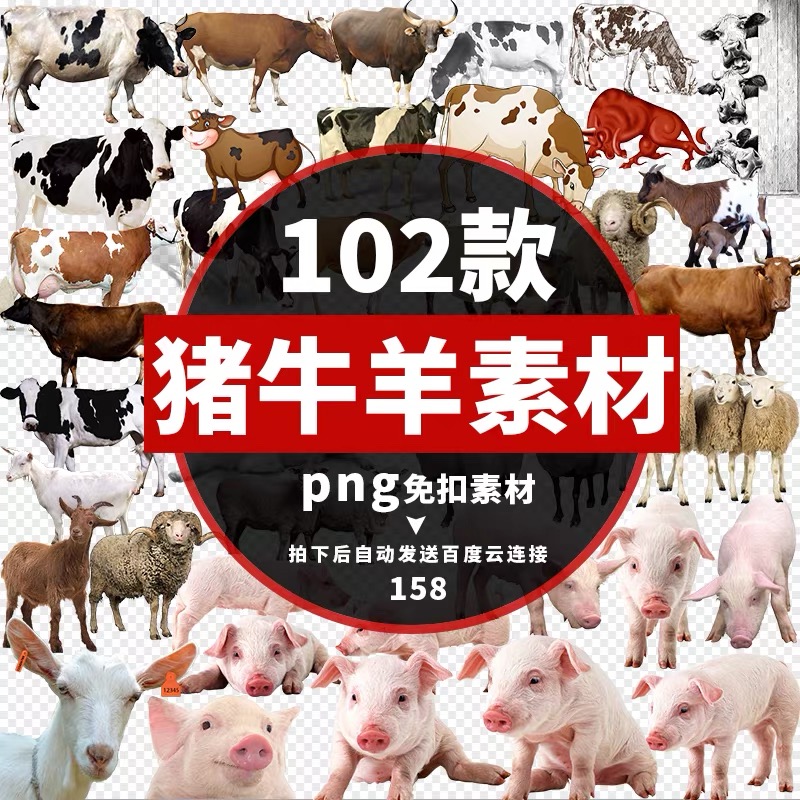 198–猪牛羊家畜动物png免扣透明设计元素平面电商素材文件下载102款