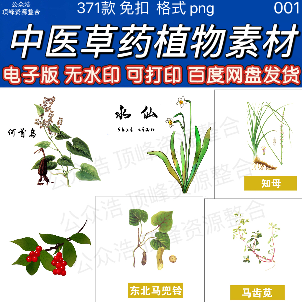 001 手绘中医草药草本植物插图背景PNG免抠图片 养生材图案PS素材-371款