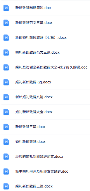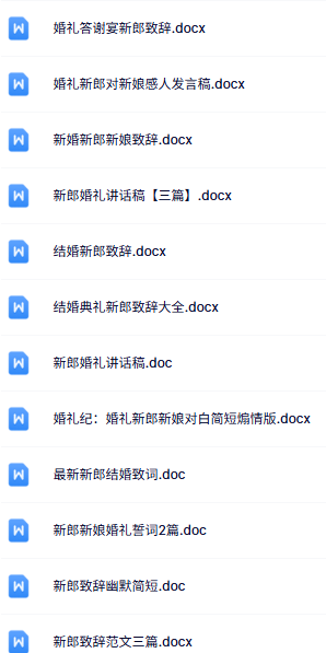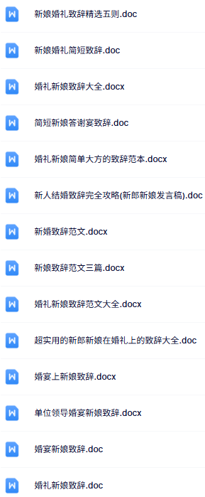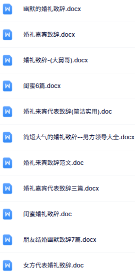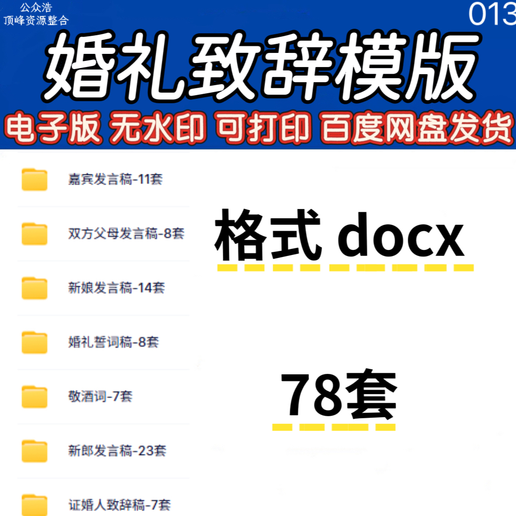 013–—婚礼致辞模板-嘉宾发言 双方父母发言 新娘新郎发言 婚礼誓词稿 证婚人致辞稿 稿-78套