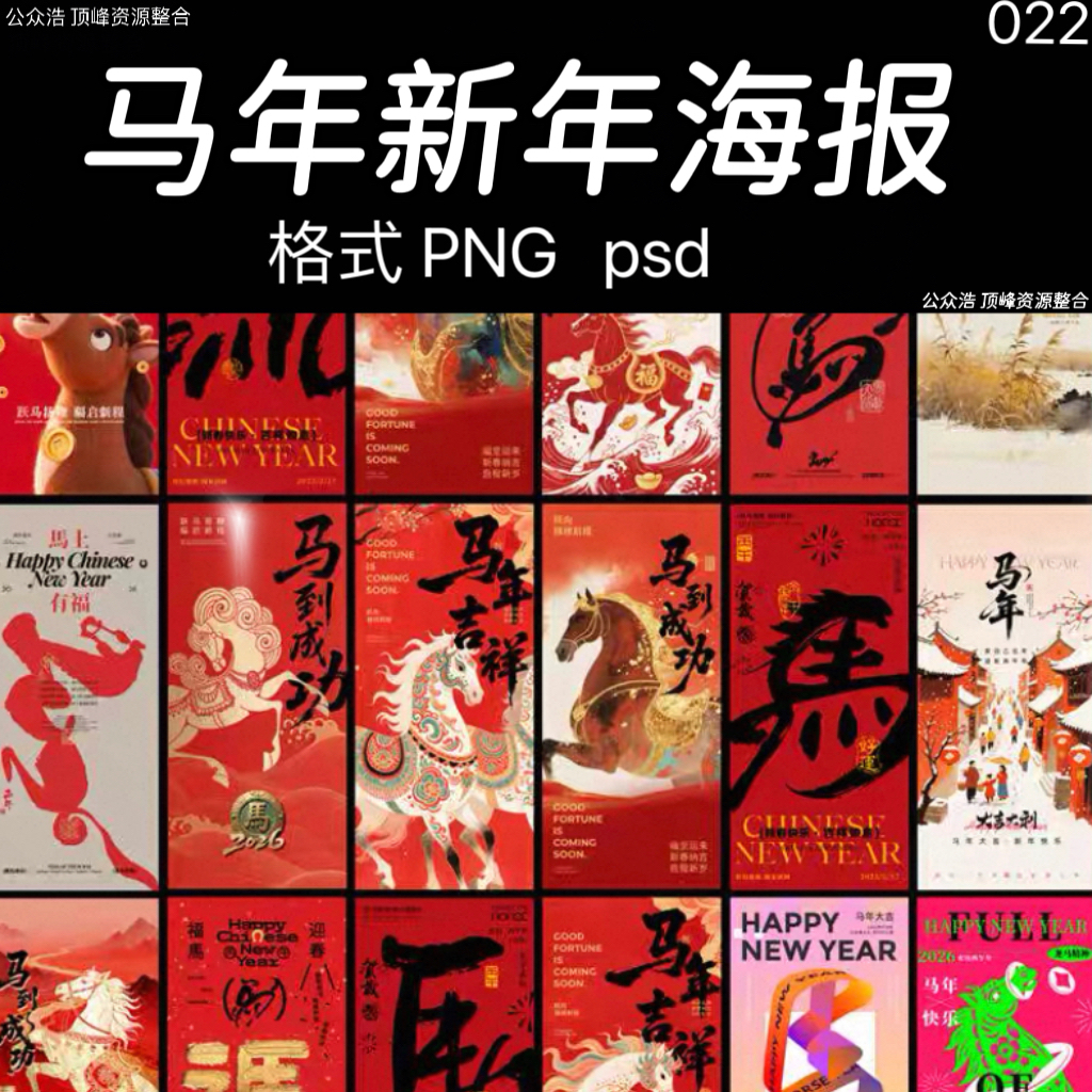 022–马年新年海报2026春节元旦跨年节假日企业展板PS/AI设计素材