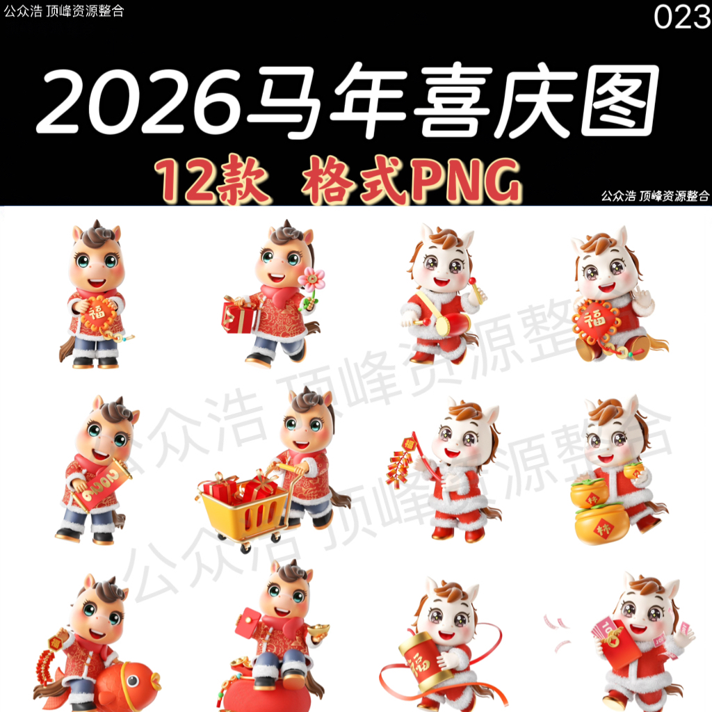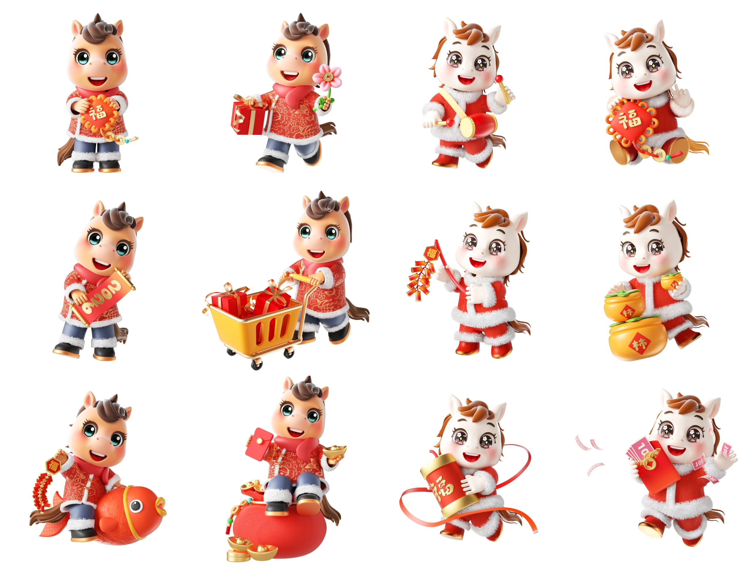 023–2026马年喜庆马人物套图C4D工程源文件3D模型设计素材素材