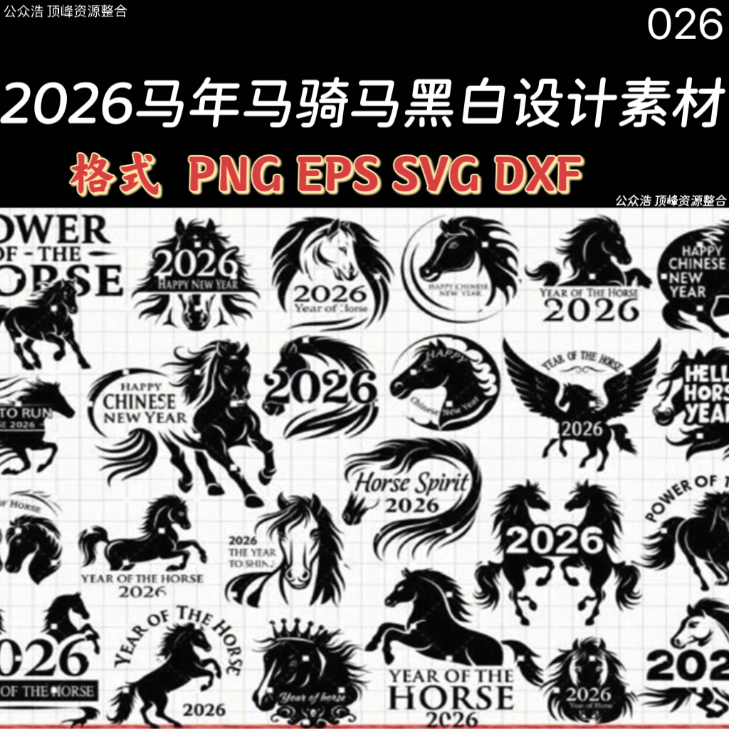 026–2026马年马骑马黑白剪切激光切割设计素材