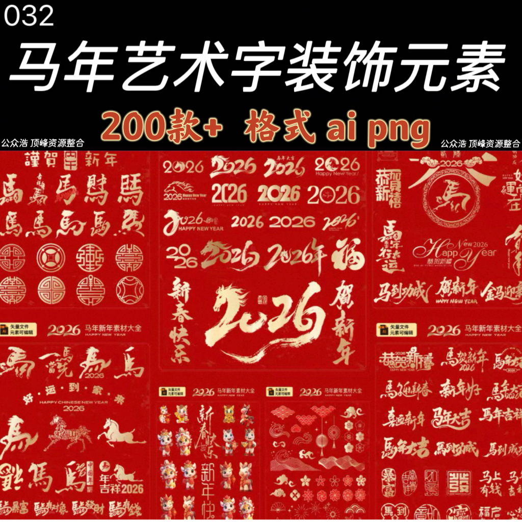 032–2026年马年新年春节书法艺术字春节装饰元素AI矢量设计素材