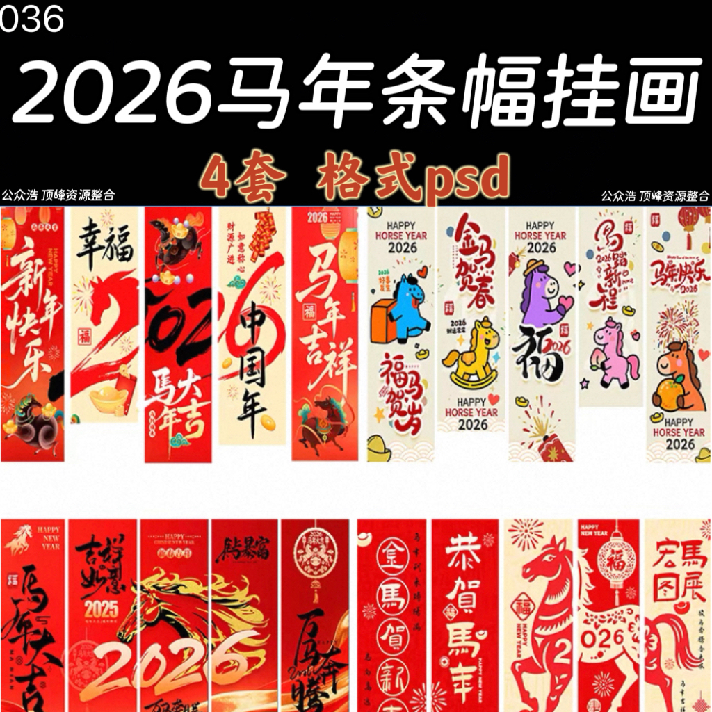 036–企业商场马年新年春节条幅挂画装饰氛围背景马年春节吊幔PS素材