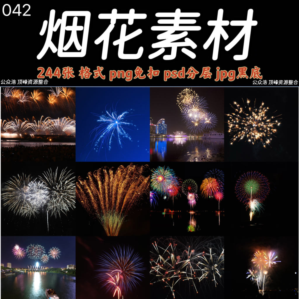 042–新年春节贺新春烟花礼花火花PSD+JPG+PNG免扣高光PS设计素材