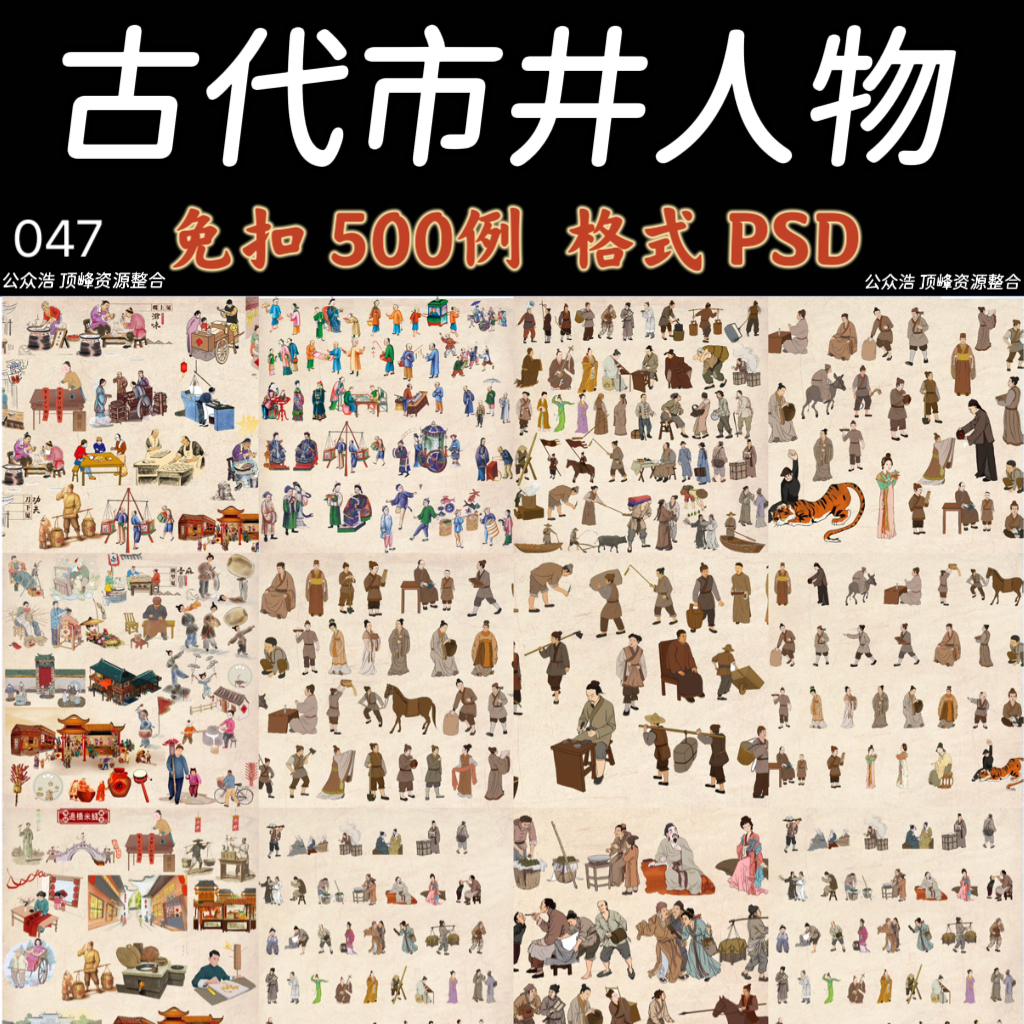 047–中国风古典古风国画效果图人物古代市井人物场景PNG/PSD免抠素材