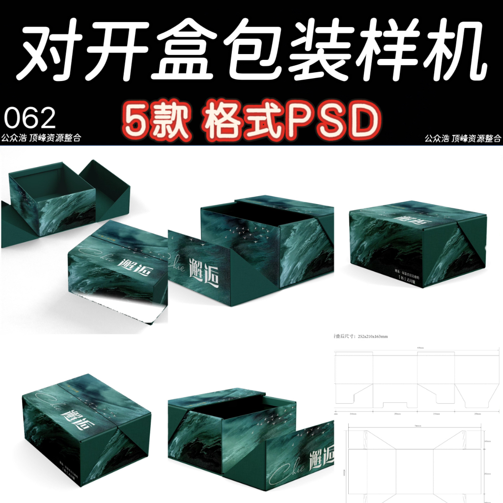 062–高端礼盒样机对开双开翻盖包装盒子刀版展开图设计贴图psd素材ps