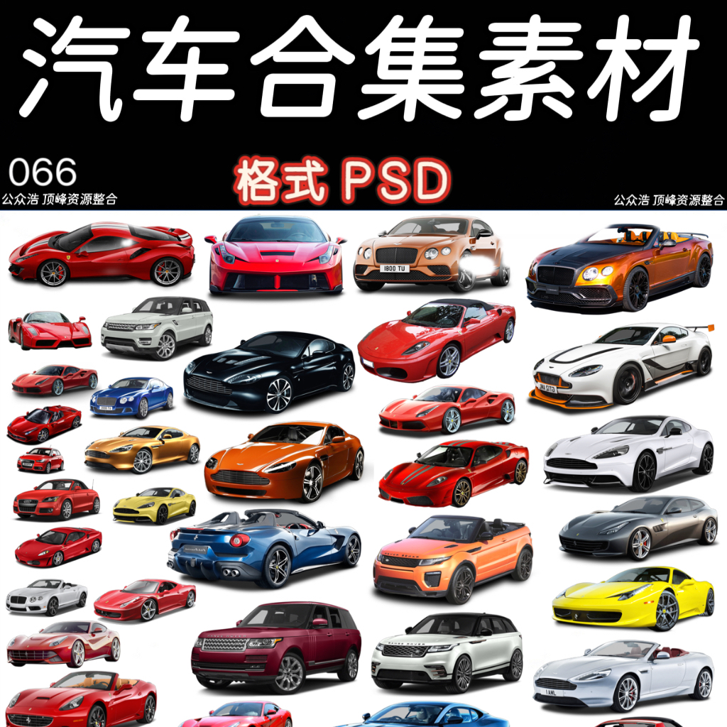 066–平面汽车 彩平图车子汽车线稿风鸟瞰效果图配景立面PSD免扣PS素材