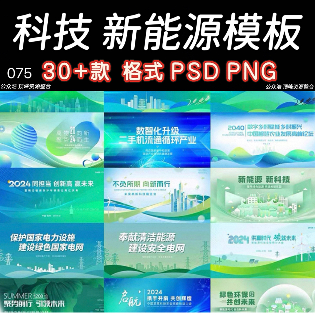 075–新能源低碳绿色科技会议论坛kv展板主视觉海报背景psd设计素材