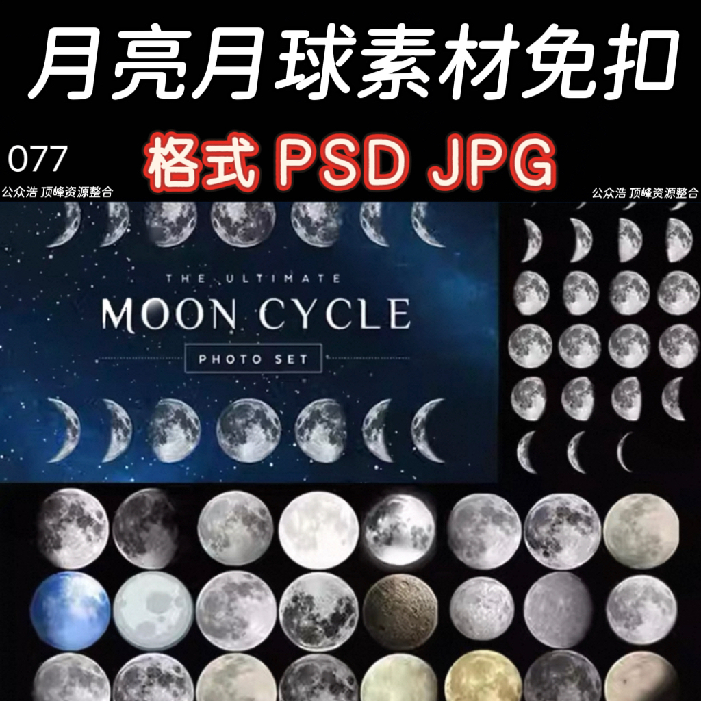 077–月亮月球圆月相月球形炫彩银色ins高清珠光高清图片ps素材png免扣