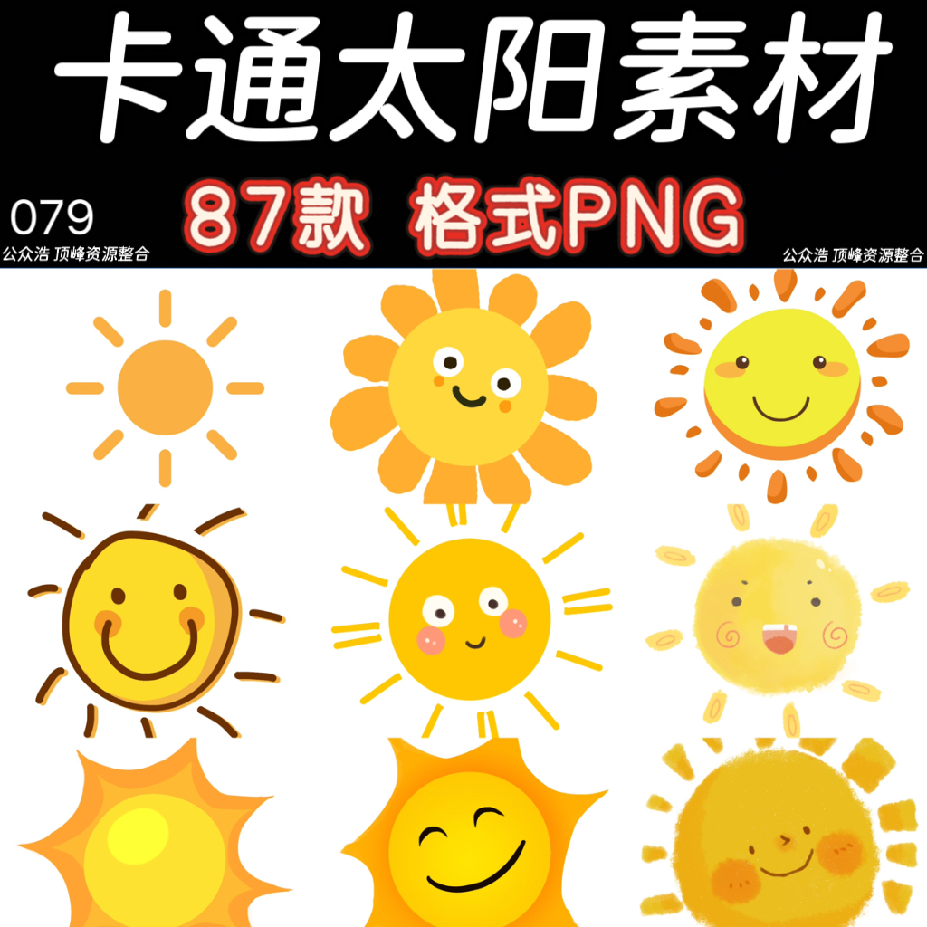 079–卡通儿童太阳爷爷可爱图案ps设计元素素材手绘PNG透明背景图片库