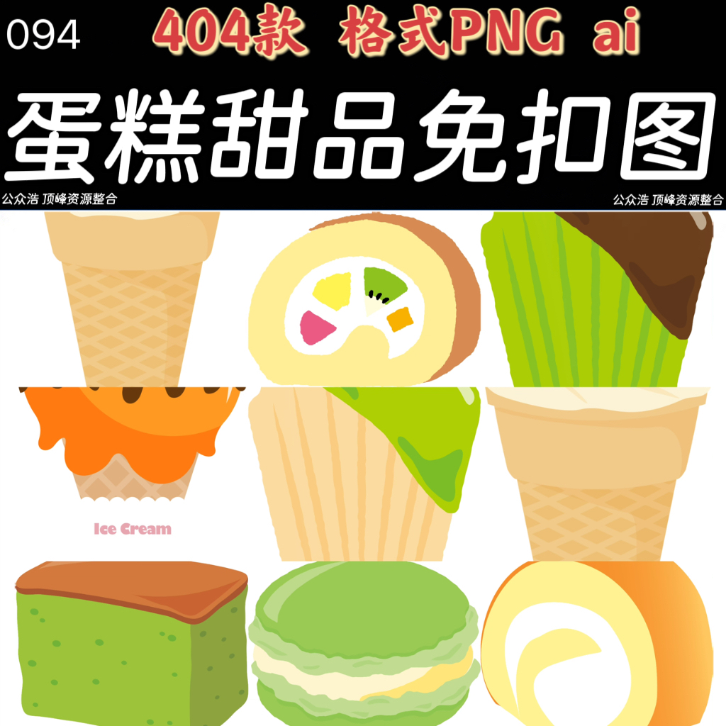 094–手绘卡通可爱蛋糕甜点PS手账照片素材合集免抠PNG装饰图案元素