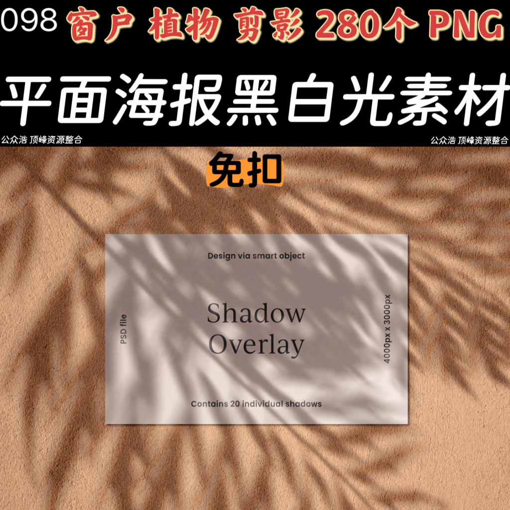 098–窗户植物树叶keyshot光影黑白剪影图 PNG免抠平面海报渲染PS素材
