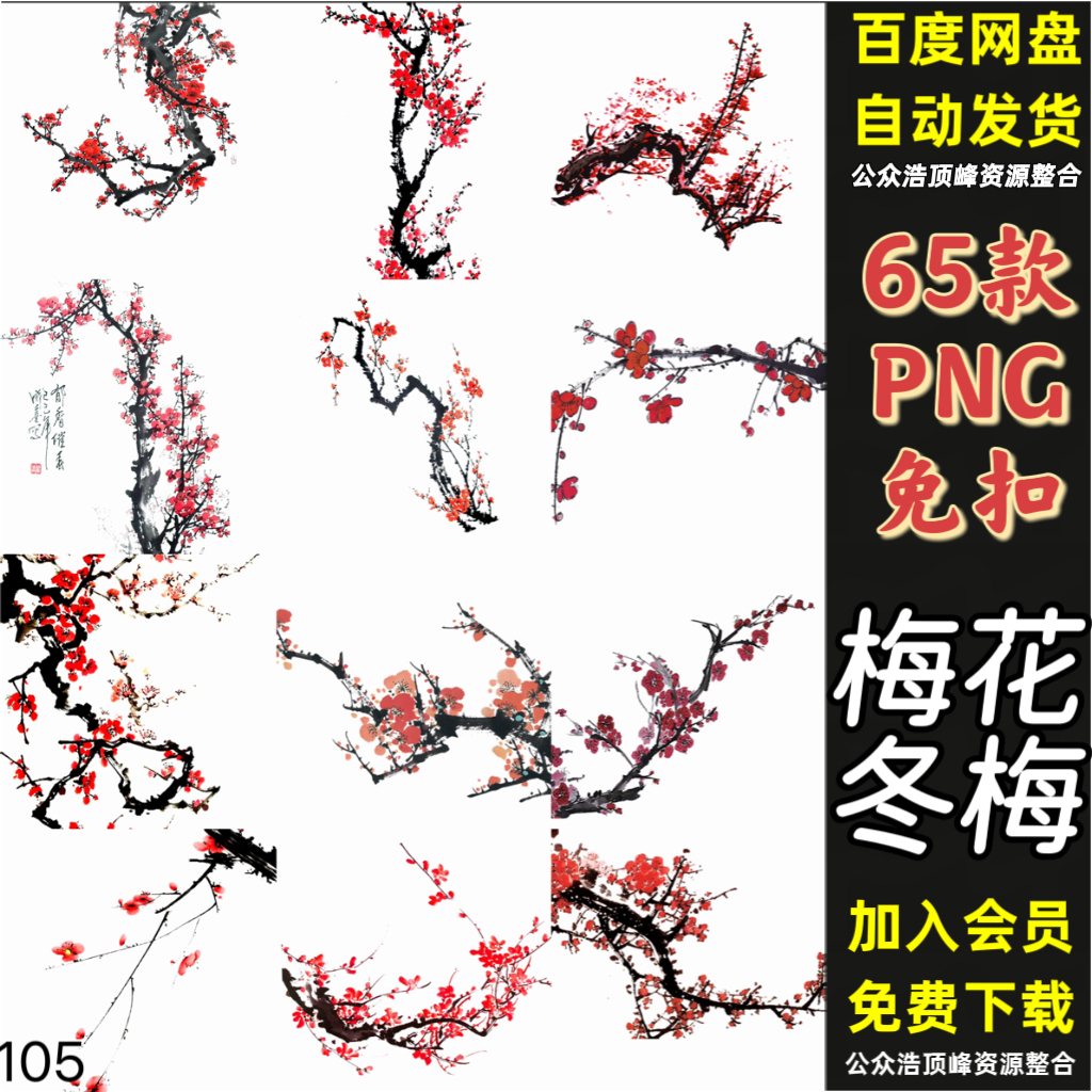 105–古典中国风水墨梅花冬梅腊梅插画国画古式免扣透明png设计素材