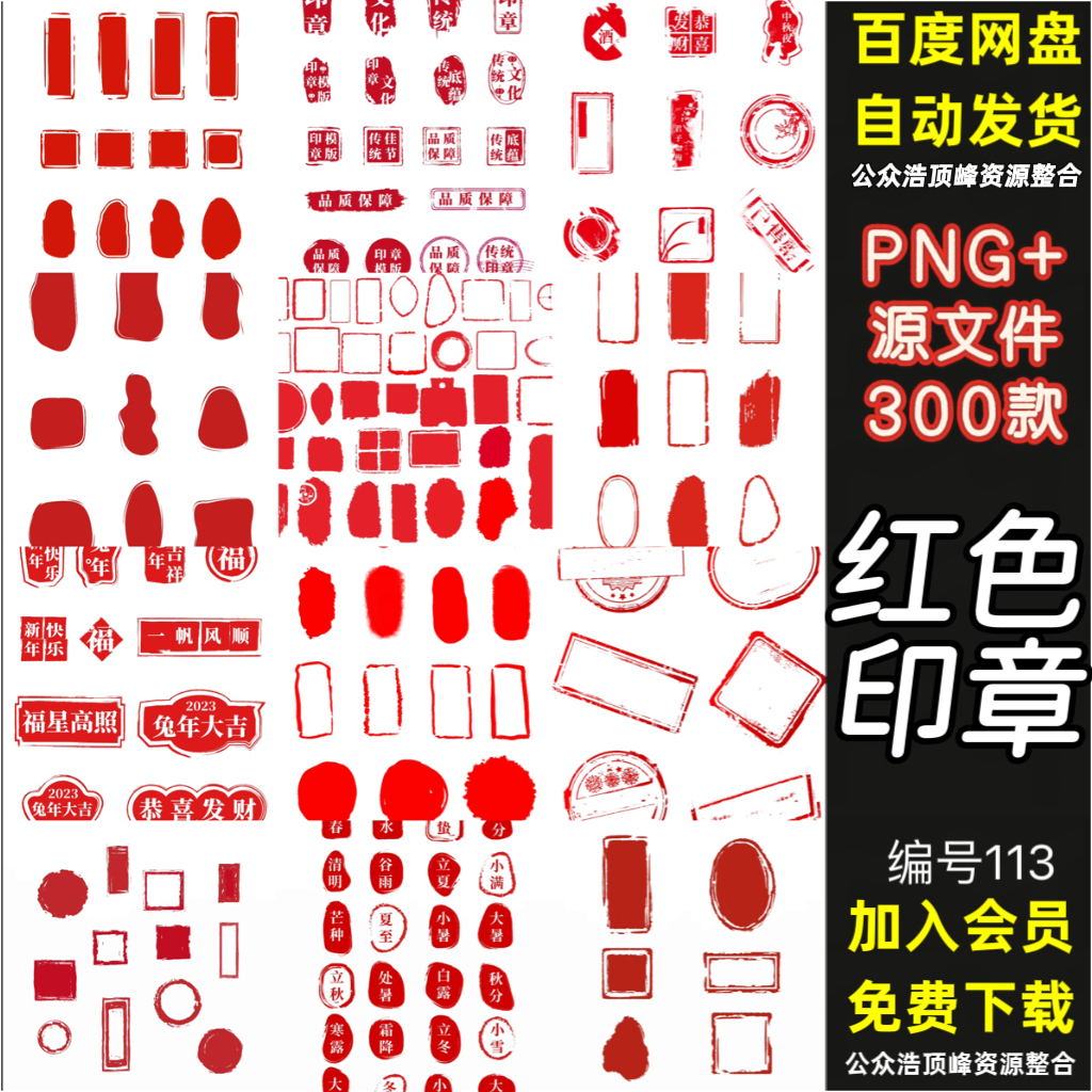 113–古典红色水墨风不规则印章模板PNG免扣素材中国风矢量边框图片