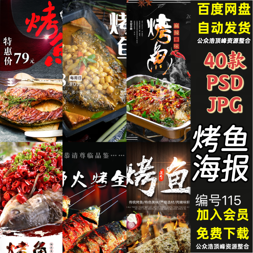 115–餐饮美食PSD海报模板香辣烤鱼夜市烧烤特色小吃广告宣传设计素材