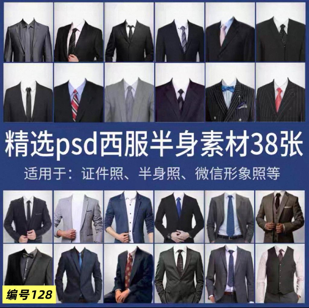 128–男士西装证件照换衣服模板形象照半身照服饰PSD免抠合成PS素材