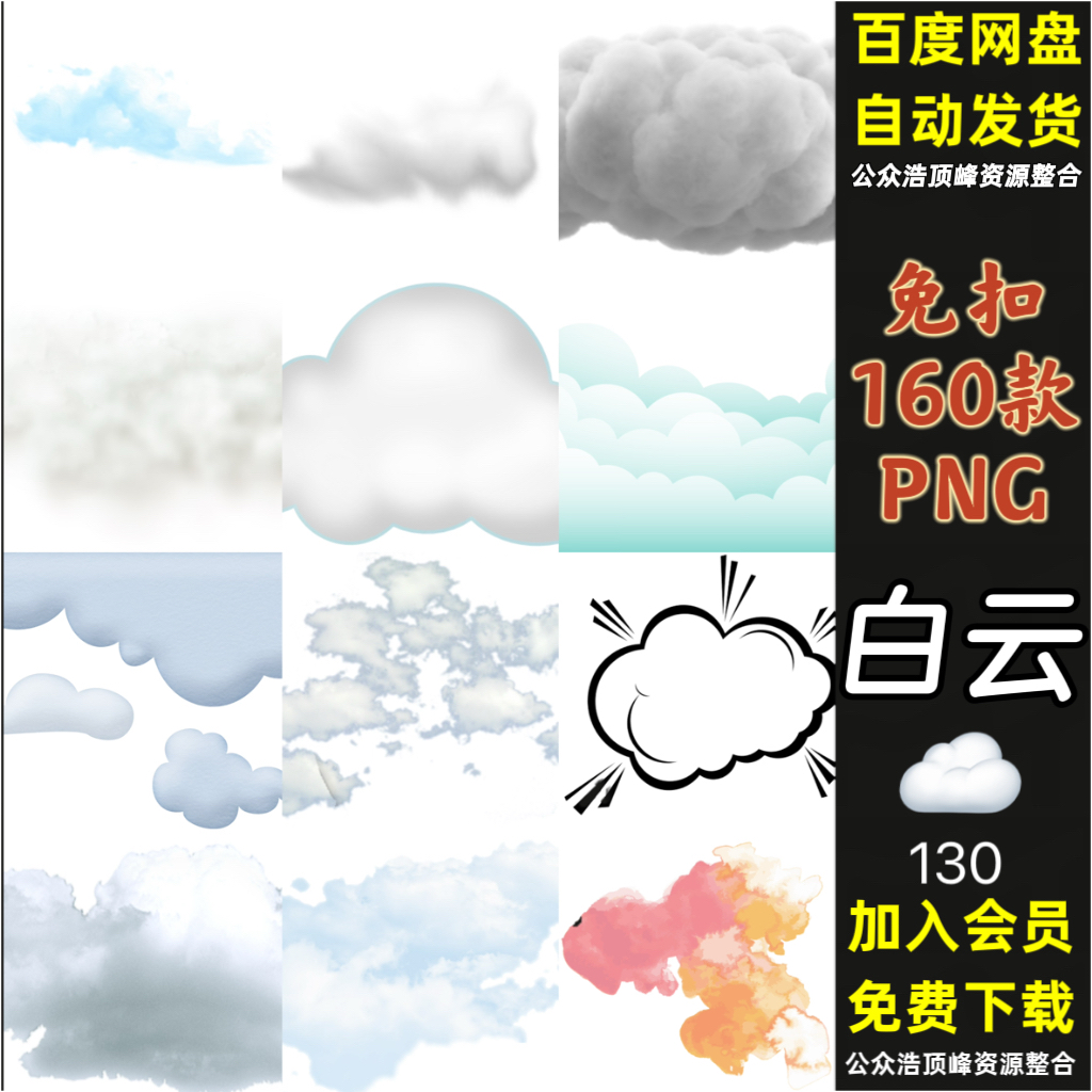 130–ppt模板免扣PS白云云朵云雾云彩PNG设计素材元素背景后期合成图片