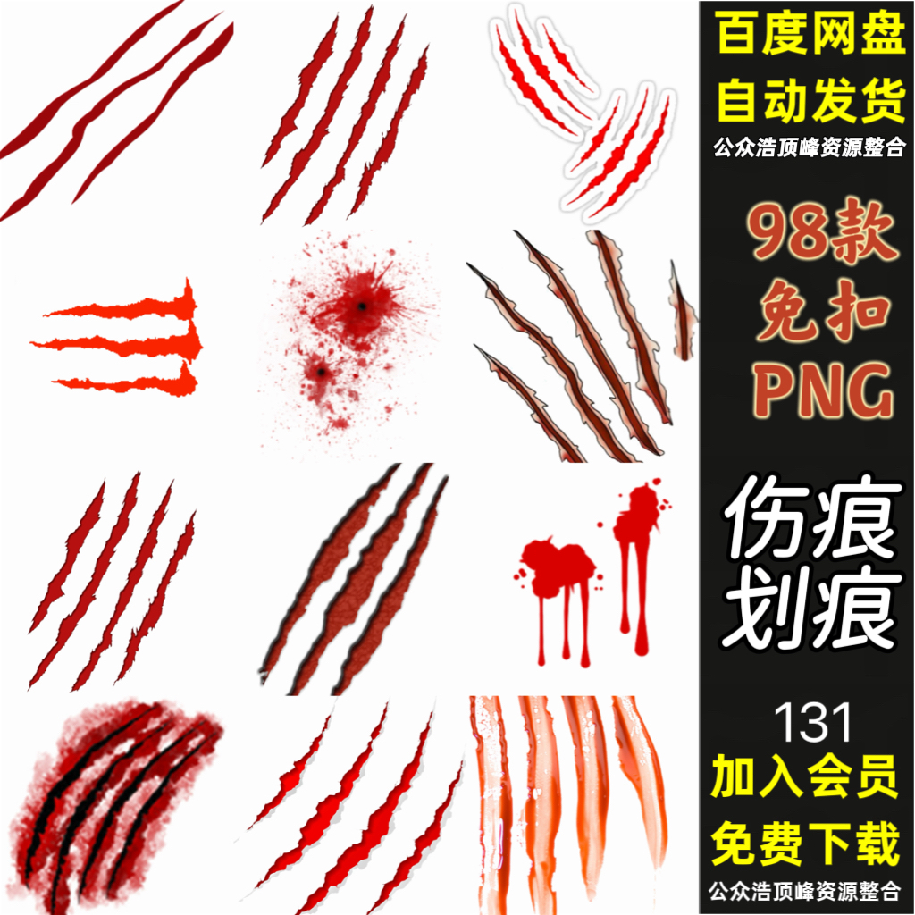 131–伤疤划痕伤口血滴效果平面后期合成特效元素PNG免扣免抠透明素材