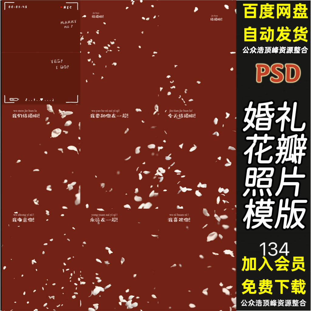 134–婚礼结婚相机边框祝福语白色浪漫花瓣飘洒飞舞PSD设计素材模板