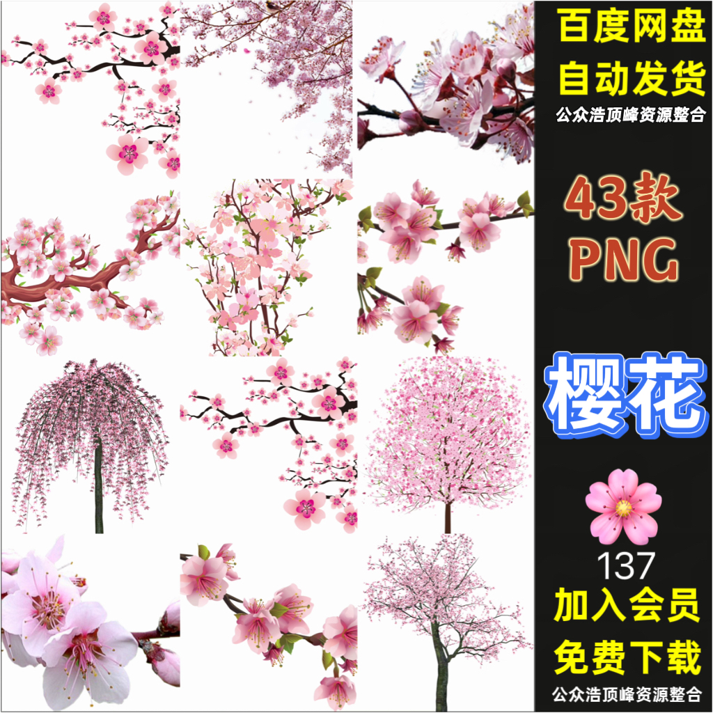 137–樱花透明底png免抠高清图片美工PS设计视频叠加层素材樱花树