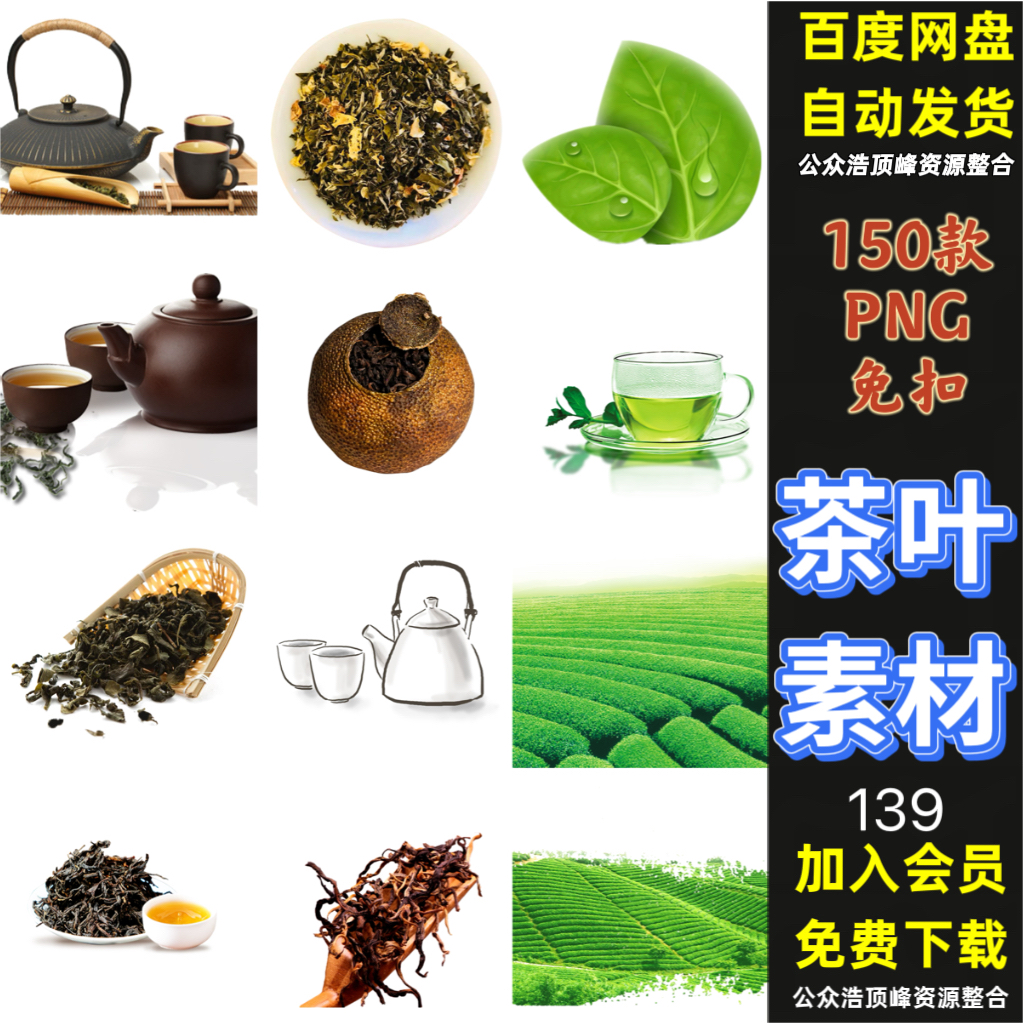 139–茶叶茶具杯子手绘干茶园风光景绿色中国风png免抠背景电商素材