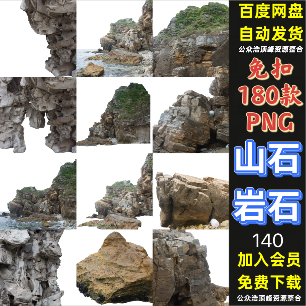140–山石岩石悬崖石头礁石假山岛石景观元素PNG免抠PS后期合成素材