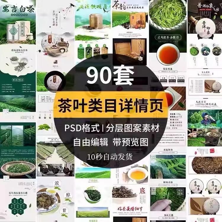 146–电商茶叶产品psd设计素材淘宝白茶绿茶普洱茶祁门红茶详情页模板
