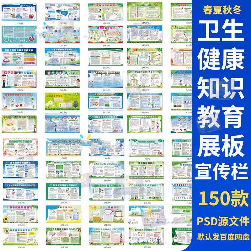 161–健康宣传栏psd设计素材健教社区医院预防疾病春夏秋冬海报展板