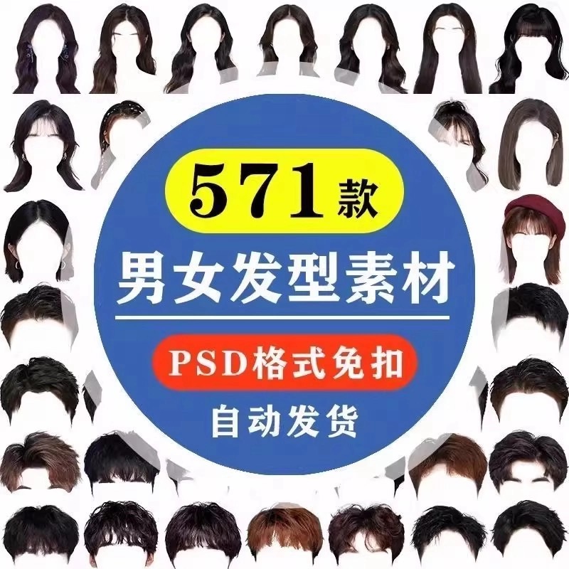 172–海马体证件照PS头发素材男生女生浏海模版假发免扣png发型模板