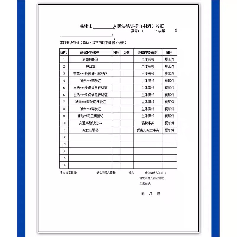 证据模版