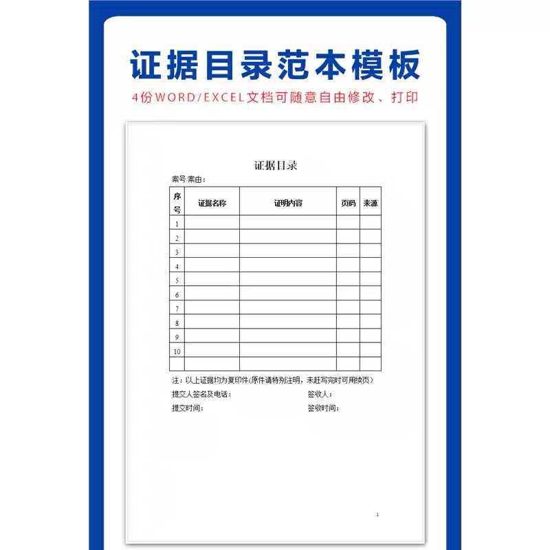 174–证据目录范本样本模板word excel文档人民法院材料清单可修改打印